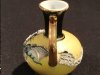 This miniature vase is "Dragonware" manufacture in Japan during the 1920's. It is made of porcelain with a tan bulbous body, black neck and foot and gold trimmed handles. It is decorated with slip-trail "moriage" dragon on its bulbous face. The vase measures 1 7/8" d x 2.5" h. A wonderful addition to your moriage or miniature vase collection!