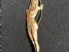 This antique souvenir spoon is of a Native American warrior with a drawn bow and arrow and probably manufactured circa 1900. It is marked with the maker's mark but small and hard to read. The spoon is very detailed - feather headdress, chest and leg musculature loincloth with good luck symbol and beaded moccasins. It measures 5.75" l. An excellent addition to your souvenir, Native American or copper collections!