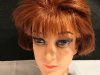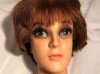 This vintage mannequin head was manufactured in Hong Kong during the 1970s, possibly by Practikin or Kayser. This mannequin has auburn hair, brown eyes and stands approximately 11" h. She has a metal base to stabilize her and is made of a softer vinyl for her face. The hair is rooted in the vinyl. She has drawn on eyebrows, eyelashes, eye make-up and light lipstick. A wonderful item for display and decorating your boudoir!