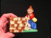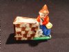 This vintage pot / figurine features a boy, dog and fence and was manufactured in Japan during the 1930s - pre-WWII. It is made of porcelain. The Tyrolian-style boy has a brown hat, white shirt, yellow bag and blue pants. The dog is a brown and white terrier next to a brown and white woven fence. the figurine measures 4 1/8" w x 1.25" d x 4" h. A nice figurine to add to your collection!