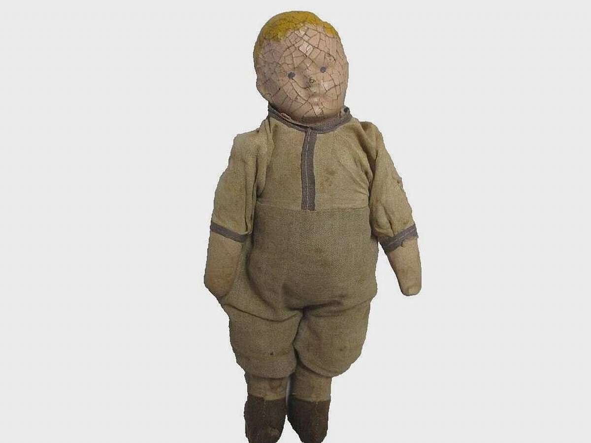 1900's Carnival & Novelty Boy Doll With Composition Head And Hay Filled Body