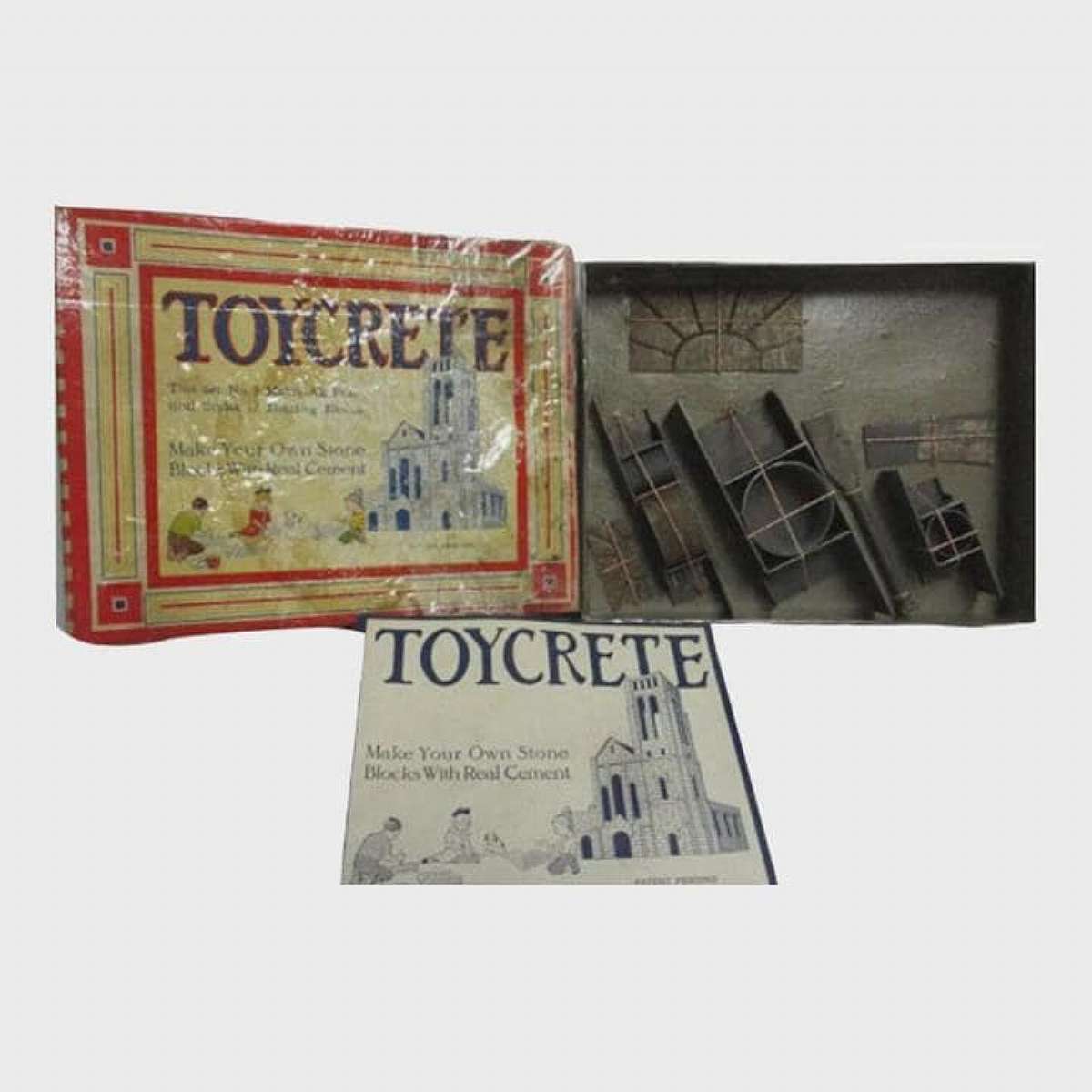 1916 Antique Toycrete Make Your Own Stone Blocks With Metal Tools Mold Kit