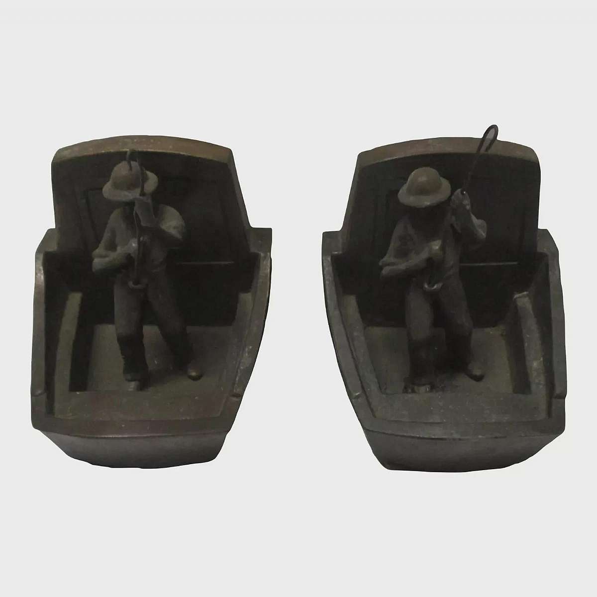 Vintage 1930's Mid-Century Sea Fisherman Solid Brass Bookends - Set of 2