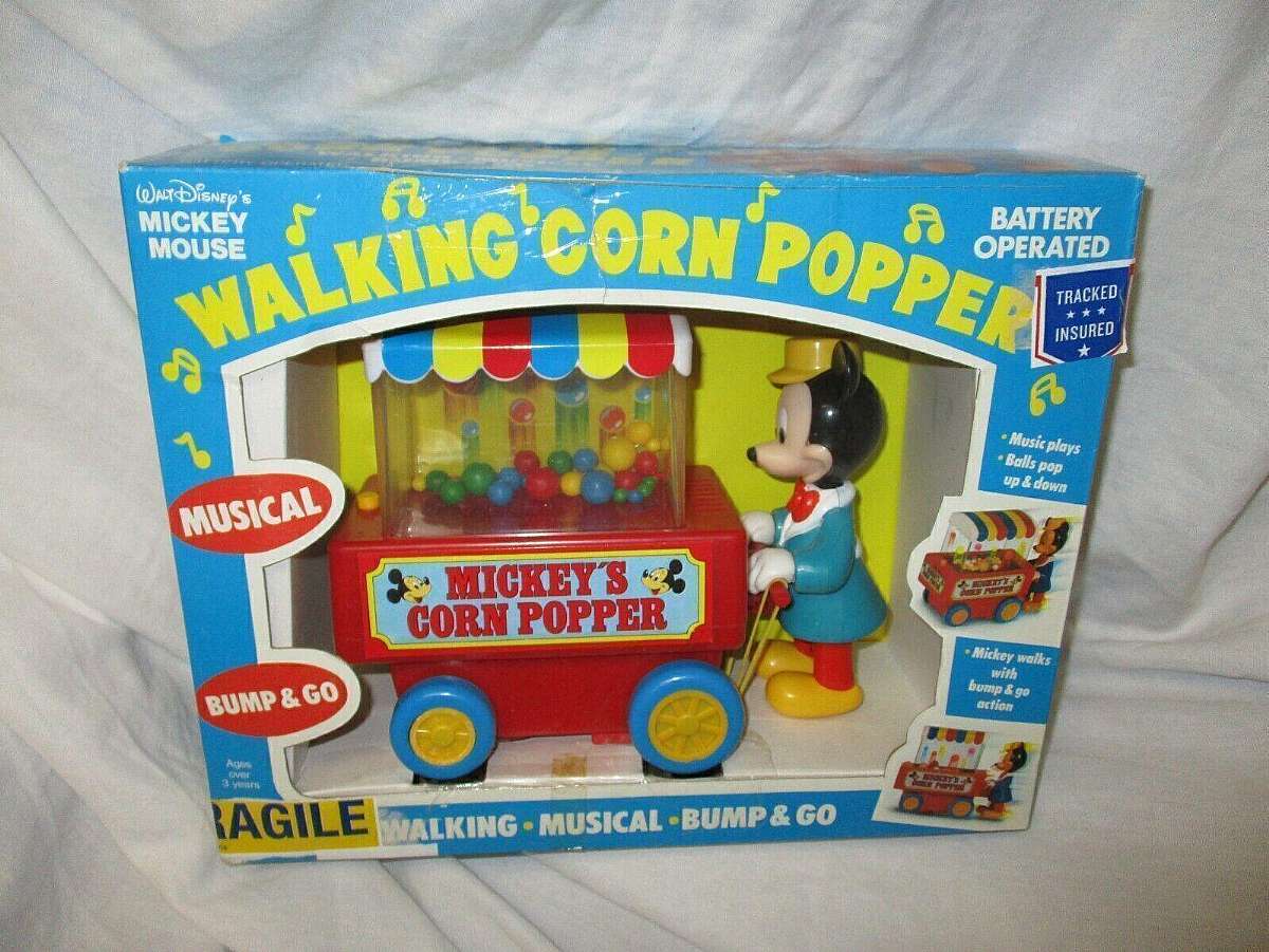 New in original factory box. The Vintage Disney ILLCO Toy Mickey Mouse Walking Corn Popper is a unique collectible featuring the iconic character Mickey Mouse from Disney. This push pop toy is a fun and nostalgic piece that appeals to Disney fans looking to add a unique item to their collection. With its contemporary design and classic Disney character, this vintage toy is sure to bring joy to both children and adults alike.