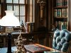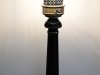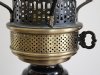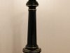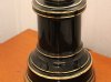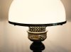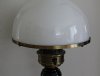 This handsome vintage electric lamp is tall and heavy. Enameled black and gold over a metal base, it has a brass bulb socket with a fancy brass key switch and a brass ring that supports the milk glass shade. The lamp measures 30 inches to the top of the shade (22 1/2 inches to the top edge of the support ring) and has a 6 1/2 inch base diameter. There is an 80 inch long brown cord and the bottom is felted. The lamp weighs a substantial 6 pounds 9 ounces.