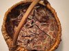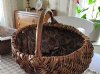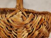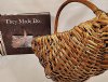 The basket is round at the top, measuring 11 1/2 inches across each way. Including the handle it is 11 1/2 inches in height and 8 inches tall without it and the weighs 1 pound 2 ounces. The color of the willow has aged to a warm brown and is just beautiful.