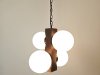 Vintage Mid Century Modern Chandelier / 4 Arm Pendant Lamp with Opaline Glass Globes